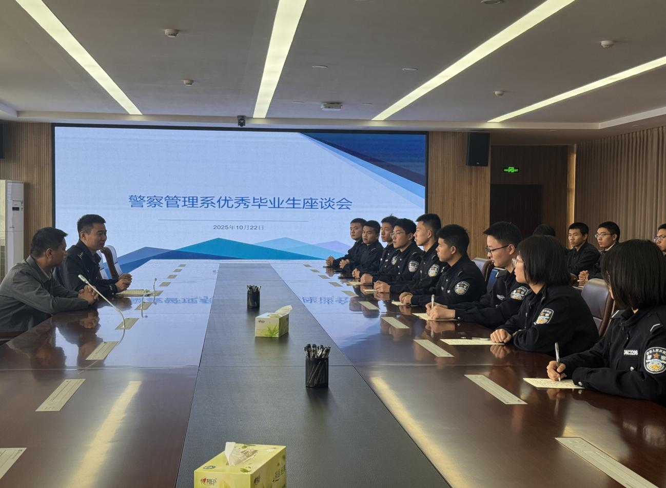座谈期间,同学们围绕专业学习、警务实践、职业规划等核心问题踊跃提问。2009届优秀毕业生苏亚伟以“永不言弃,在挑战中淬火成钢”为主题,结合自身十四年从警生涯的实战经历,逐一回应同学们的困惑,分享了对人生与职业的深刻洞见与感悟。他对同学们提出三点期望:一是持续精进学业,以扎实学识拓宽人生赛道;二是兼顾工作与初心,以无私奉献彰显人生价值;三是秉持友善之心,以团结协作凝聚集体力量。