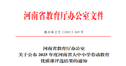 近日,2025年度河南省大中小学劳动教育优质课评选获奖名单正式公布,我院宁小萱老师参赛课程《“陶”冶心志 “耕”续华章——陶诗中的劳动哲思》荣获省级一等奖(辅导教师:崔凯璇),吕程琳老师参赛课程《实干兴邦 匠心筑梦——走进朱仙镇木版年画》荣获省级二等奖(辅导教师:陈淑娅)。此次获奖充分彰显了我院教师在劳动教育教学领域的扎实专业功底与创新实践能力,是学院劳动教育育人成效的重要体现。